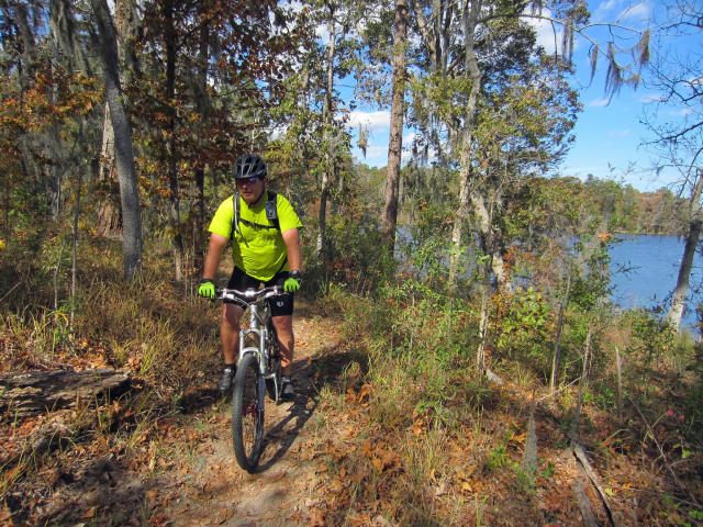 Prarieville native Bob Walker enjoying a gorgeous fall day while mountain biking at Lake Kincaid trails.